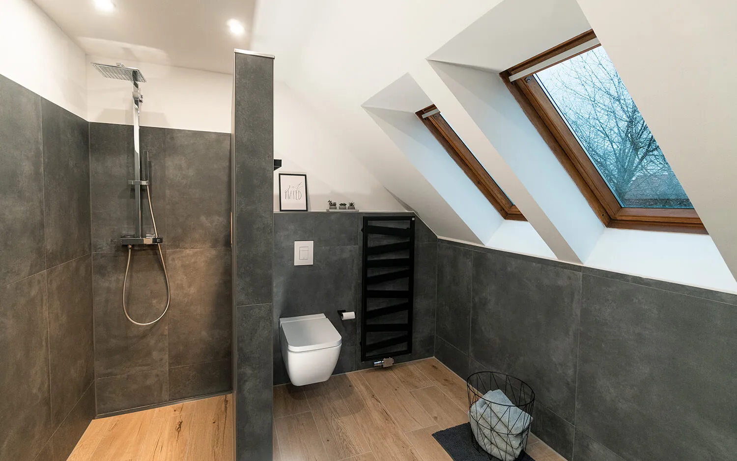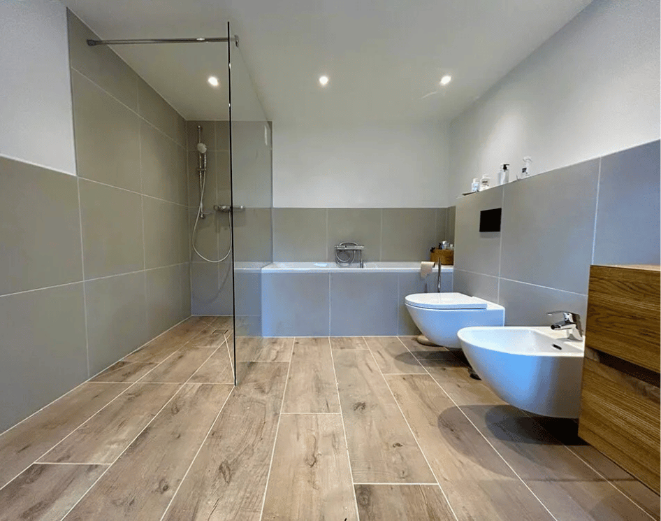 - Beheizter Fliesen-Fußboden mit Holzoptik
